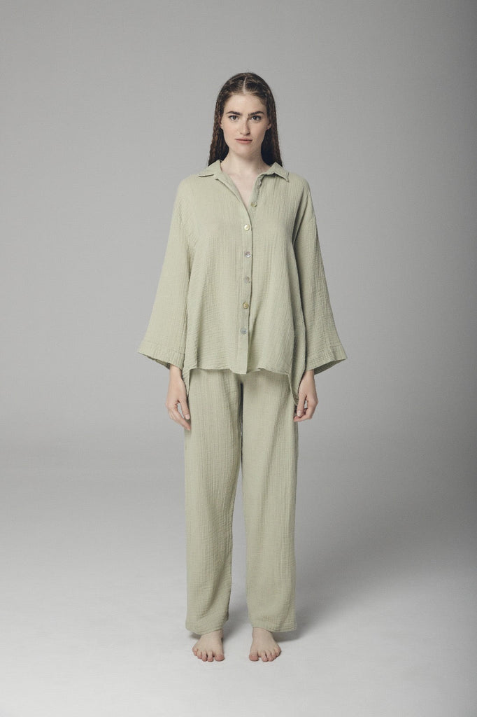 The breathable gauze weave keeps you cool and comfortable—soft against the skin, airy in its drape, and perfect for warm-weather days. Pair with our matching tops for a complete set, or style them simply with your favorite linen blouse.